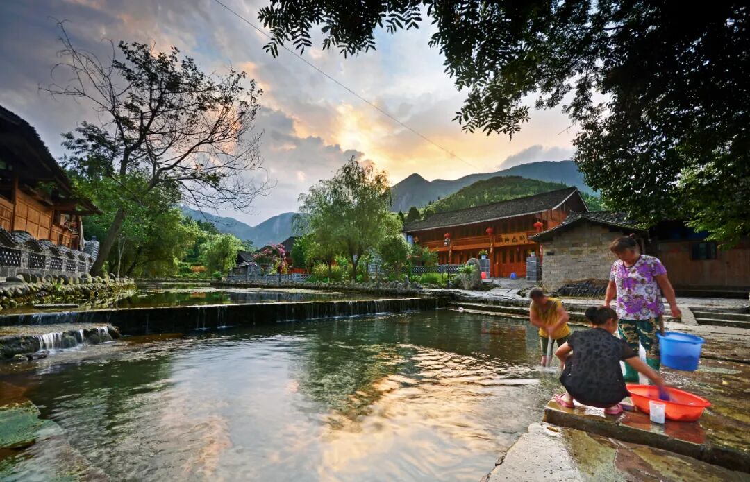 走进云舍村,一幅“小桥流水人家”画卷映入眼帘,被誉为“世界上最短的河流——龙潭河”,水质清澈、碧如翡翠、深不见底,据说其水消涨变化是云舍人预测天气的晴雨表。游客们漫步村中,不仅可以领略到云舍村的自然美景,还能深入体验土家族的传统文化和民俗风情,享受着这份难得的宁静。