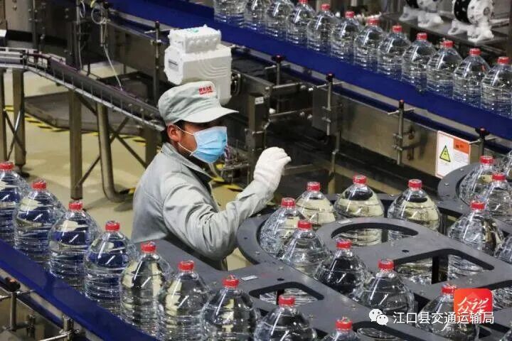 工人在农夫山泉贵州梵净山饮用水有限公司生产线上作业。